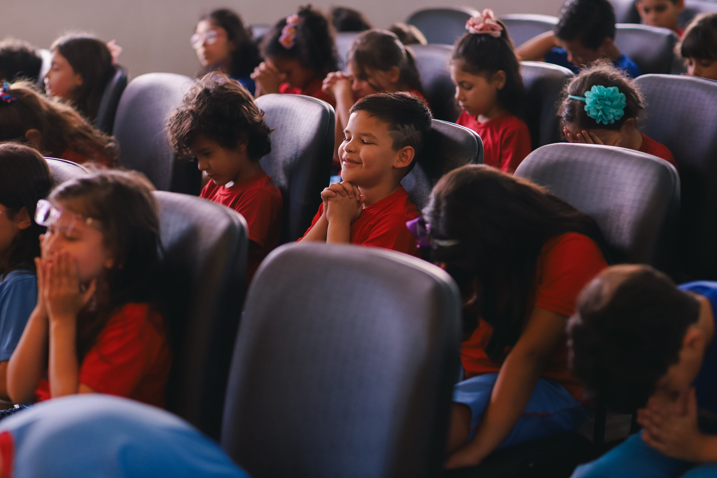 O culto acontece semanalmente, com os alunos organizados por segmento, respeitando cada faixa etária. Esse momento é conduzido de forma intencional, com participação de professores, equipe escolar e alunos, que também se envolvem no louvor, promovendo comunhão, ensino bíblico e crescimento espiritual.